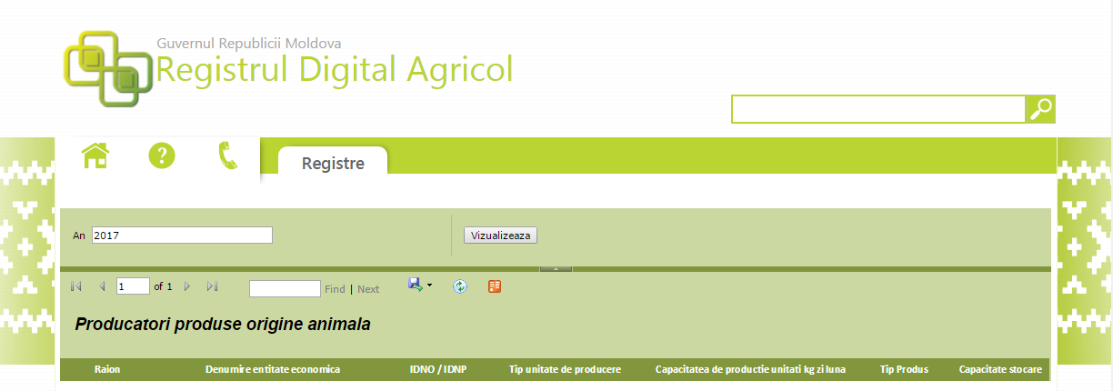 Registrul Producători produse origine animală are scopul extragerii de informații cu privire la capacitatea de producere produse de origine animală per entitate economică.