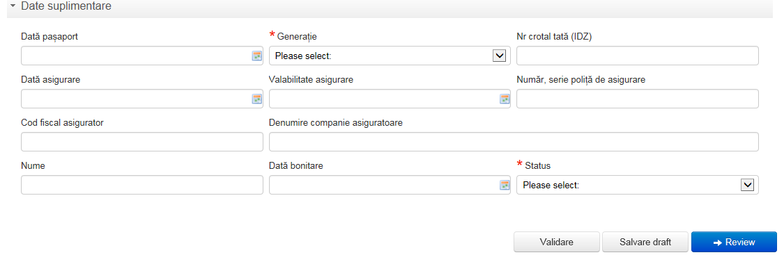Utilizatorul va completa în secțiunea Date Animal - Cabaline câmpul Nr. crotal (IDZ număr de identificare) și va apăsa butonul Interpelare iar apoi va completa subsecțiunea Date Suplimentare din cadrul secțiunii. Subsecțiunea Date din Registrul Animalelor va fi completată automat prin funcționalitățile de integrare cu soluția RSA (Registrul Animalelor).